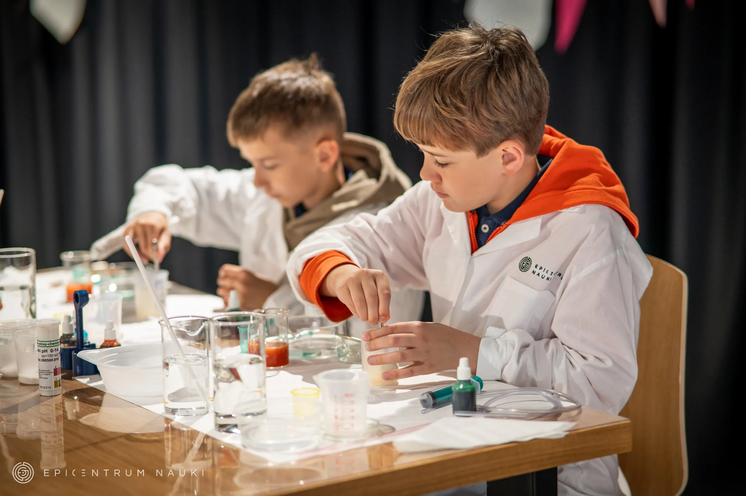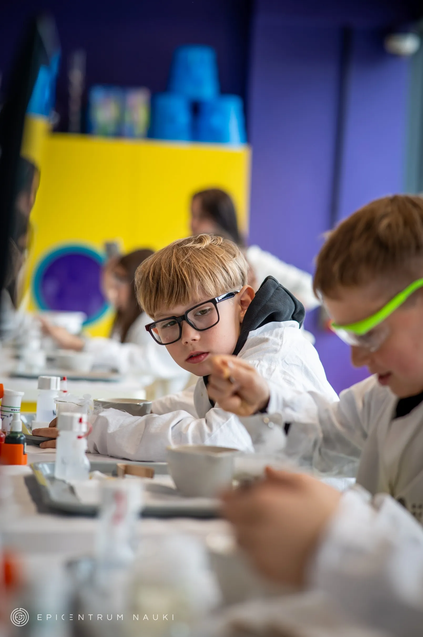 • Warsztaty sensoryczne – tworzenie cieczy nienewtonowskiej i kreatywnych mas plastycznych.