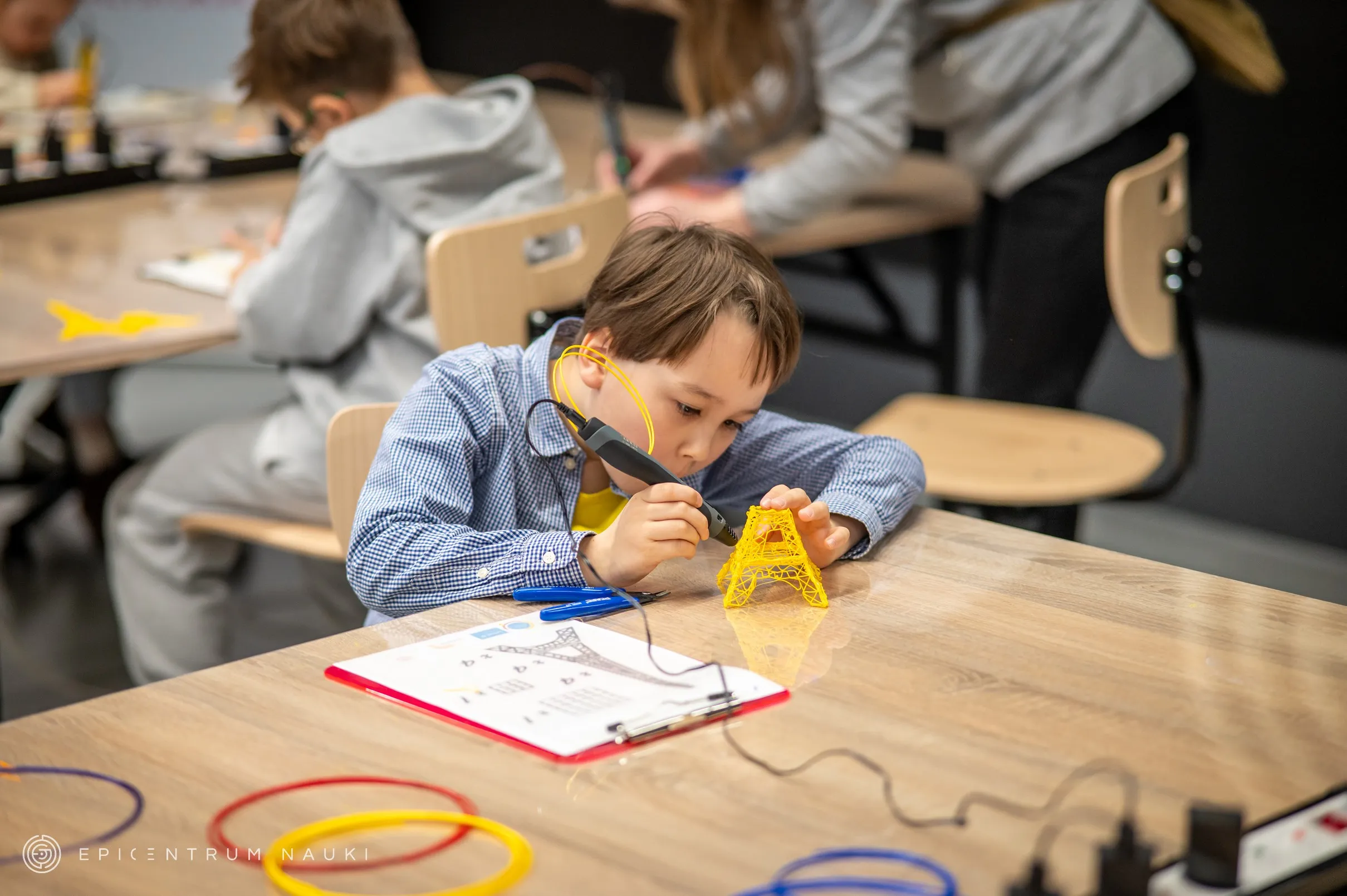 • Druk 3D – uczestnicy korzystali z długopisów 3D, tworząc własne przestrzenne projekty.