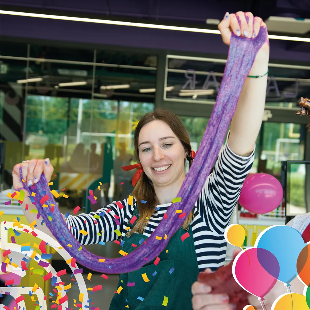 Stworzymy eksperymentalny twór z elastycznej masy polimerowej, którą można ugniatać, rozciągać i formować w nieskończoność. To świetna okazja, by zobaczyć w praktyce, jak powstają polimery i dlaczego mają tak niezwykłe właściwości. Udowodnimy, że nauka może błyszczeć (dosłownie!), bo jeśli świętować pod hasłem BROKAT I JEDNOROŻCE, to tylko w widowiskowy sposób!