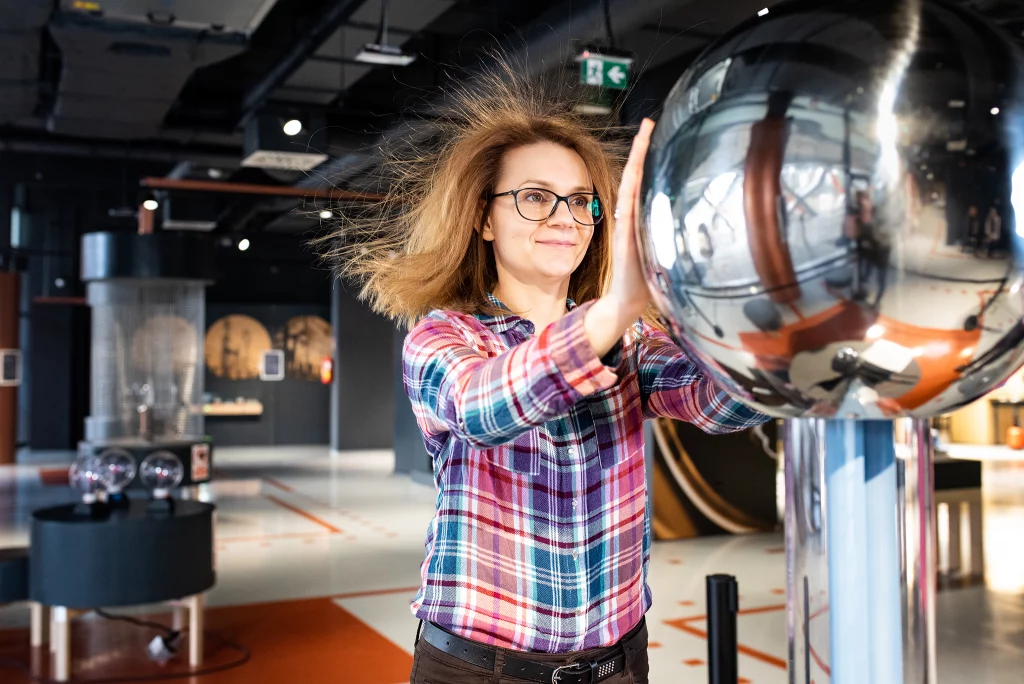 Strefa „Idź z prądem” to obszar łączący epokę pary i elektryczności ze współczesnością. Dawniejsze „mózgi elektronowe” zajmowały ogromne przestrzenie, dziś dzięki rozwojowi techniki smartfony czy tablety możecie zmieścić w małej kieszeni spodni. Korzystając z napędu ręcznego oraz elektrycznego, uzyskacie kilkucentymetrową iskrę elektryczną! Spróbujcie dzięki sile swoich mięśni wygenerować prąd! Na fanów motoryzacji czeka nie lada gratka – symulatory aut elektrycznych i spalinowych!