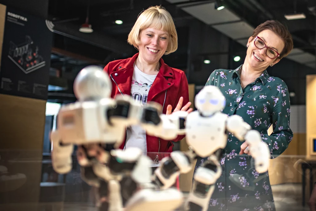 Algorytmy sterowania mają swoje zastosowanie także w tzw. liniach produkcyjnych. Dzięki automatyzacji wiele powtarzalnych procesów może odbywać się bez pracy człowieka. Takie linie trzeba zaprojektować i zaprogramować. To zadanie dla prawdziwych specjalistów! W tej strefie poznacie interaktywne roboty, których ruchy przypominają ruchy człowieka. Potrafią chodzić, robić pompki i przewroty. Poznając podstawy programowania, przy okazji nauczycie je tańczyć!